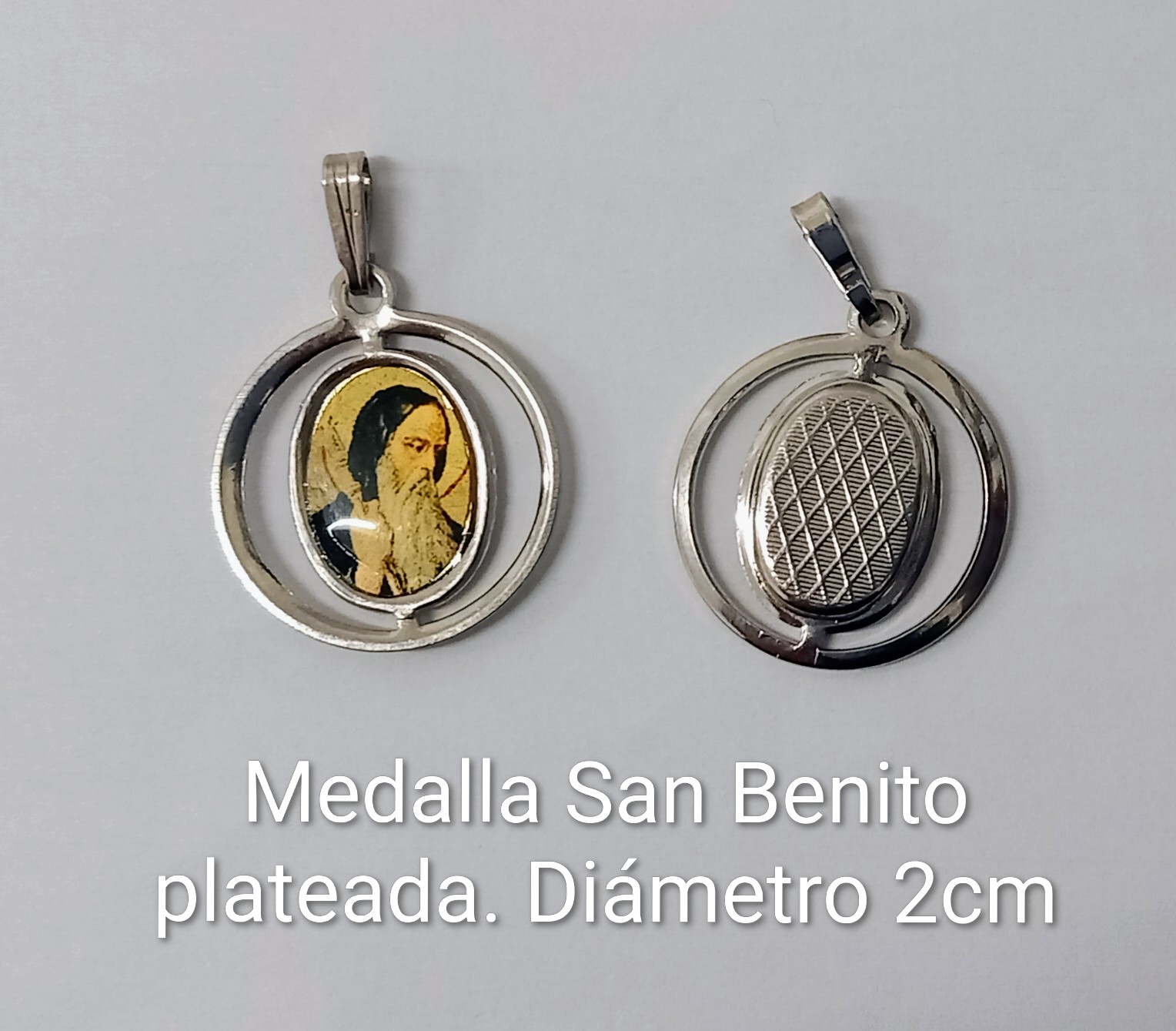 Cruz de metal de 8 centímetros de san Benito para colgar, esmaltada en varios colores a elegir.