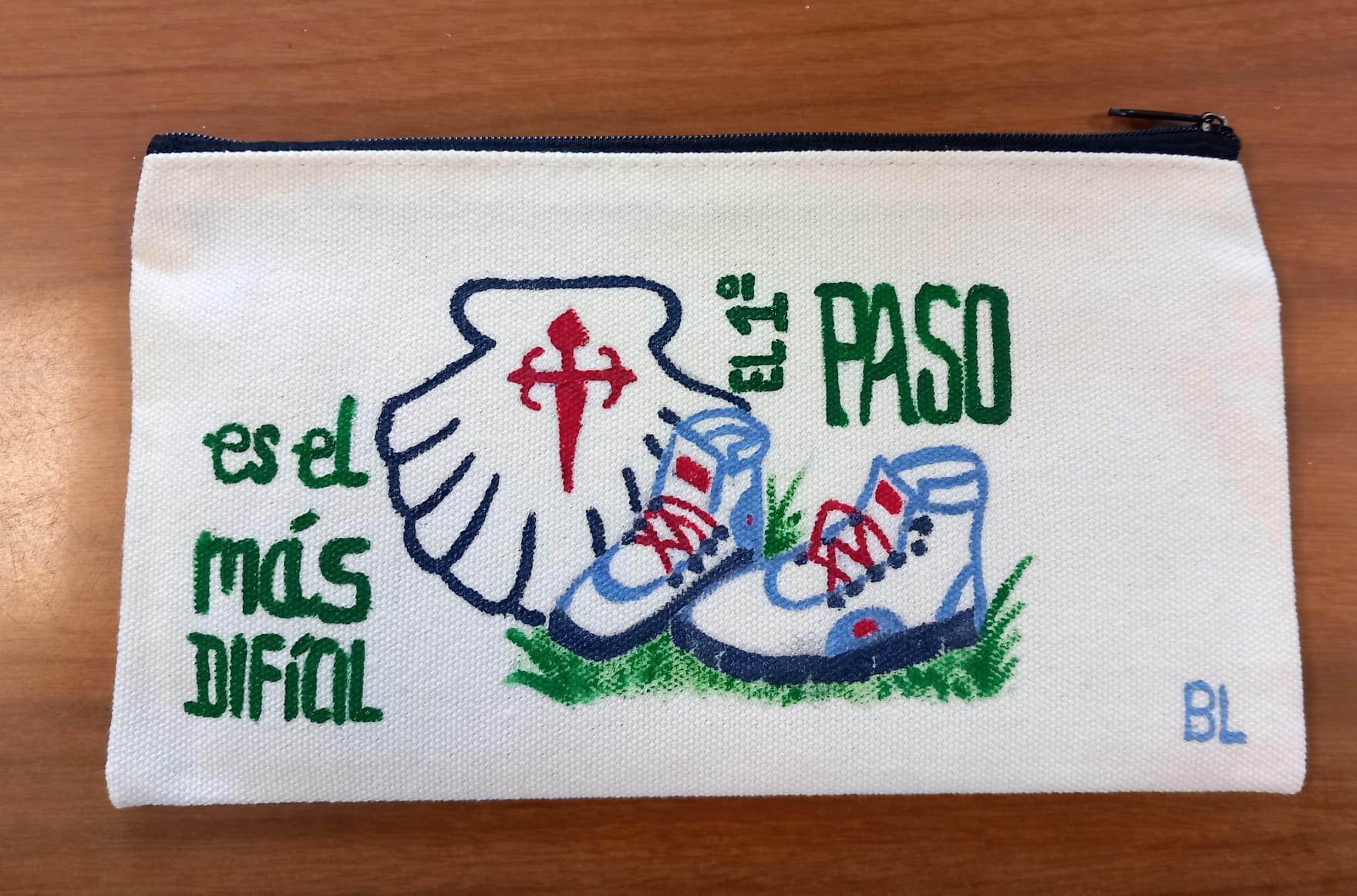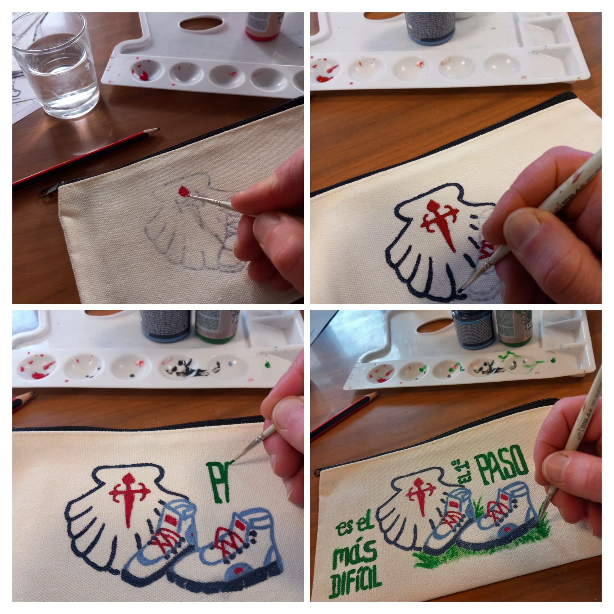 ESTUCHE de tela pintada a mano con motivos del Camino de Santiago.
